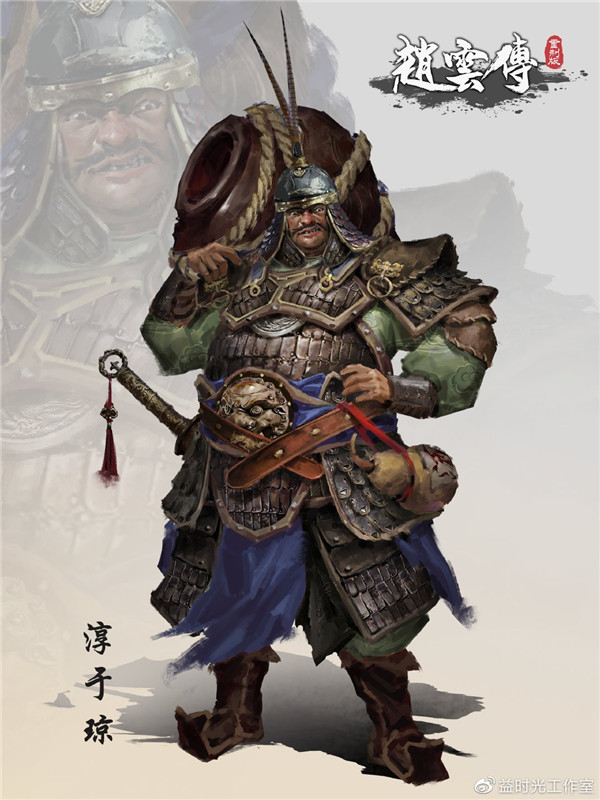 淳于琼在汉灵帝时即被授予右校尉,是西园八尉之一,与袁绍、曹操同列,是三国初期较有知名度武将之一。在《三国演义》官渡之战中,淳于琼驻守乌巢,整日酗酒无备,遭曹操突袭,粮草被焚,最终导致袁绍军战败。《赵云传重制版》中的故事中,淳于琼及属下军纪涣散无法无天,与赵云发生了多次冲突。人物立绘形象重点突出“酒蒙子”形象,背负酒缸做夸张化形象处理,相关技能设定也与酒有关,是非常有特点的一场Boss战斗。